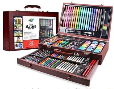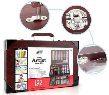 Delux drveni kofer sa bojicama za decu sastoji se od 123 šarenolika dela i dolazi elegantnom, lako prenosivom drvenom koferu. Kompletan pribor ekološki bezbednih bojica, olovaka, gumica, i još mnogo toga, očaraće naše najmlađe u ovom velikom delux setu.