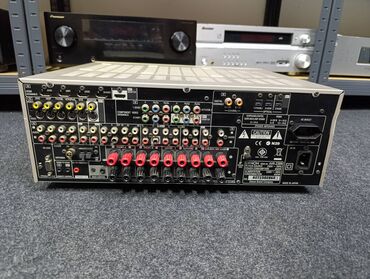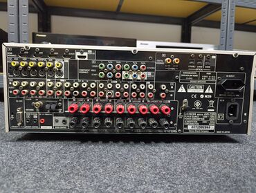 - Zadnja strana (prema natpisima i seriji): više HDMI ulaza/izlaz, komponentni i kompozitni video, koaksijalni i optički digitalni audio, više analognih stereo ulaza, 7.1 pre-out, terminali za zvučnike A/B, FM/AM antene, RS-232 i trigger za integraciju