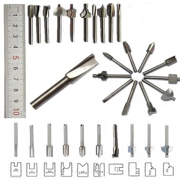 Nov komplet od 5 glodala za drvo osovina 6 mm.