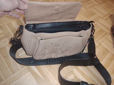 Ženska torba – set 2 u 1, bež/karamel boja - Materijal: meka eko koža sa blagom teksturom. - Glavna torba: model hobo/shoulder, V-izrez pri vrhu, široka ručka za nošenje preko ramena, kopčanje na ...