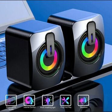 Kompjuterski zvučnici sa RGB osvetljenjem koji poboljšavaju zvučnu i vizuelnu atmosferu. Ovi zvučnici su dizajnirani za savršen audio doživljaj uz visoku kvalitetu zvuka i fantastične svetlosne efekte. Idealni su za radnu površinu, uživanje u muzici, filmovima i igrama. 🎶🎮