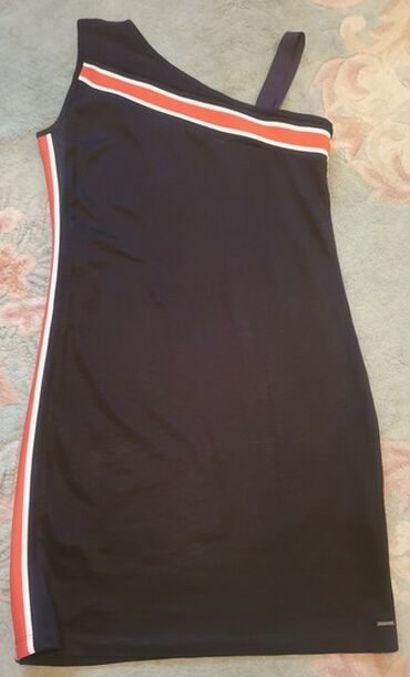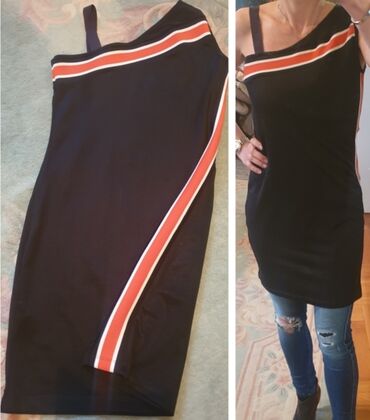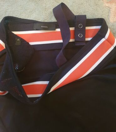 DIESEL original haljina, letnja , fazonska, sportska crna. Sa strane celom duzinom crvena traka, kao i na breteli.. vrh bretele rupicast, traka je od materijala kao lastiš. M velicina, meni malo velika.. nije nosena.. sportski fazon..super i uz patike.