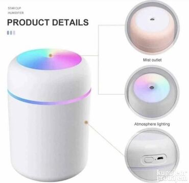 Rezervoar za vodu od 130 ml, sa šarenim noćnim svetlom koje stvara prijatnu atmosferu.