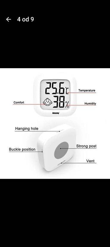 - Veliki LCD prikaz sa jasno čitljivim ciframa: temperatura u °C, vlažnost u %