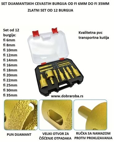Dijamantske cevaste burgije za busenje keramike, stakla, granita, kamena. .. .