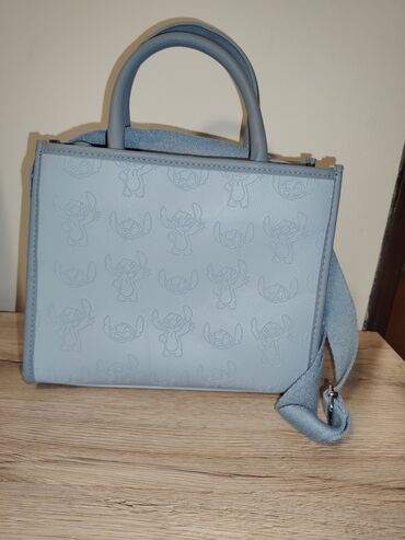 - Dizajn: prednja strana sa izvezenim likom Stitch-a koji drži lutkicu, natpis “Stitch”; pozadina i bočne strane sa utisnutim (embosiranim) Stitch motivima po celoj površini