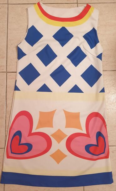 S (EU 36)Divna haljina, letnja, prati liniju tela. Mini. S velicina. Ima rajsfeslus sa strane. Geometrijski print
