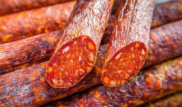 - Domaća kobasica/sudžuk: zrelo sušena, bogato začinjena, vidljivi komadići mesa i masnoće, intenzivna crvena boja. Prikladna za meze, pice, omlete ili kao proteinski dodatak jelima.