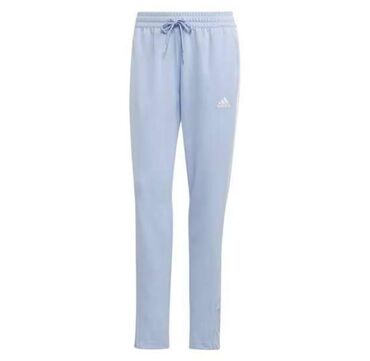 Ljubičaste ženske trenerke/pantalone sa blagim zvonom na nogavicama. Elastičan pojas sa učkurom za podešavanje. Ravan kroj kroz butine, blago šire pri dnu. Na desnoj nogavici postoji dekorativni p...