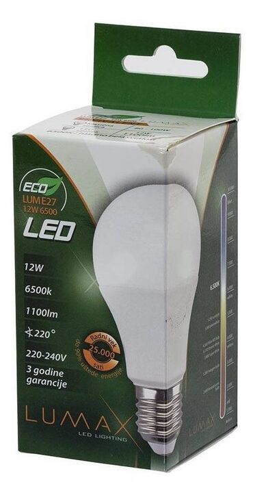 LUMAX led sijalice ECO LUM E27-12W 6500K hladno bijela svjetlost.