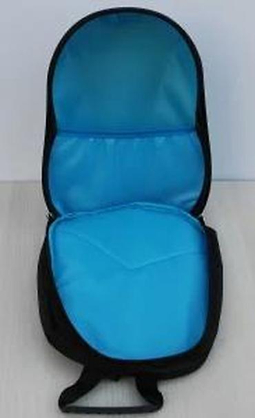 - Unutrašnjost: prostran glavni odeljak sa plavom postavom i elastičnim džepom za organizaciju svezaka, knjiga ili tableta.