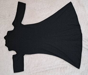 Haljina je turske proizvodnje, veličine 38. Ima otvorena ramena i asimetrične rukave. Prorez na dekolteu. Crne je boje. Nošena par puta, u odličnom stanju.