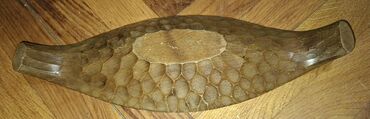 Ručna drvena dekorativna posuda – izdužen, čunak oblik sa integrisanim krajevima/ručkama.