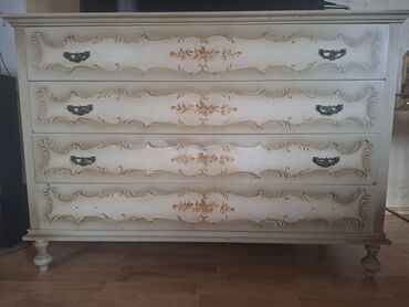 - Materijal: puno drvo sa profilisanim frontovima i ukrasnim reljefnim lajsnama