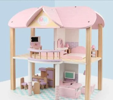 Za devojčiceDrvena kućica za lutke sa nameštajem – dvospratna