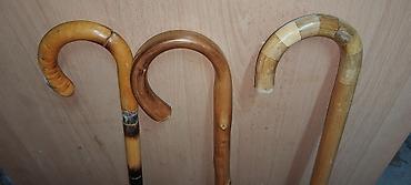 - Dizajn: svaki štap jedinstven – jedan sa tamnim prstenastim detaljima, jedan prirodno talasaste strukture drveta, jedan sa segmentno savijenom drškom