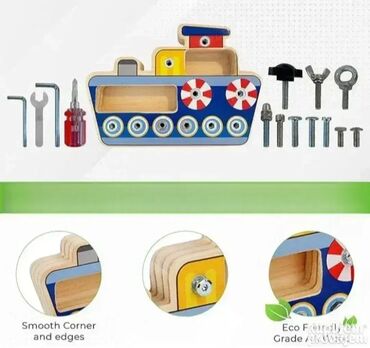 Drvena igračka brod sa alatom je idealna za razvoj finih motoričkih veština. Koristeći alate i komponente drvenog broda, deca mogu da razvijaju koordinaciju ruku i očiju, kao i spretnost kroz manipulaciju i sklapanje delova.