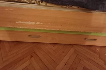 - Donja fioka u punoj širini kreveta, sa dve metalne ručke; pogodna za posteljinu, jastuke ili sezonske stvari. Ispod bočne maske nalazi se dekor traka zelene boje.
