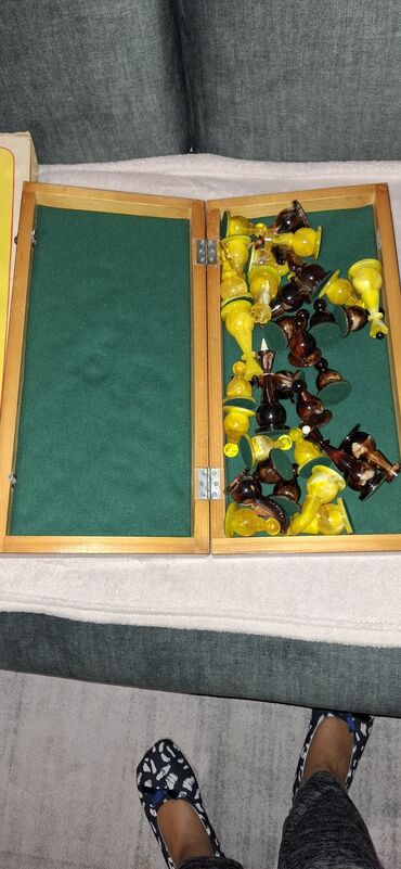 - Pribor/kutija: dolazi sa originalnom kartonskom futrolom na kojoj piše “ШАХМАТЫ” (ruski), pogodna za čuvanje kompleta.