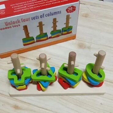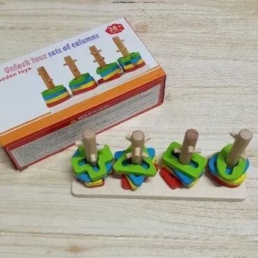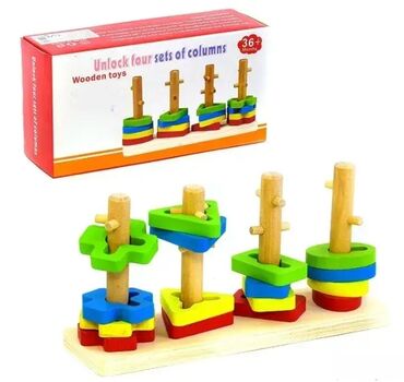 🪵 Drveni stubići sa oblicima za decu će razviti koordinaciju oka i naučiti decu da prepoznaju boje, geometrijske figure i operativne simbole.