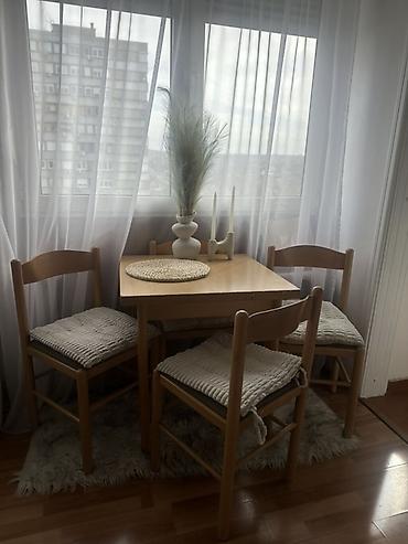 Drveni trpezarijski set – sto + 4 stolice - Komplet sadrži: kvadratni