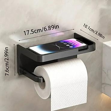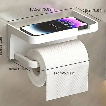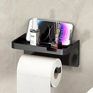 Prošireni držač toalet papira sa usisnim sredstvom: Zidni držač toalet papira ima žlebljeni dizajn koji štiti predmete od klizanja. Proširena polica može da primi razne predmete, kao što su mobilni telefoni, vlažne maramice, sapun za ruke, maramice za lice, osveživači vazduha i aromaterapija.