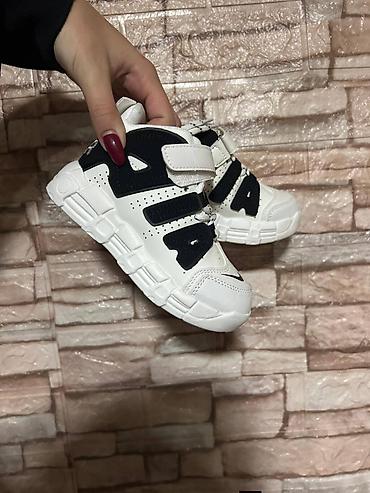 Dečije patike – veličine 31–35 - Model: niske patike sa vezivanjem. - Boje: bela sa crnim detaljima, crna sa belim prugama, braon sa belim prugama. - Đon: gumeni, u prirodnoj (camel) boji, protivk...