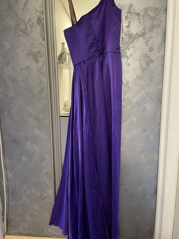 Duga ljubicasta satenska haljina