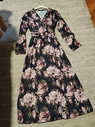 Duga ženska haljina s cvetnim dezenom