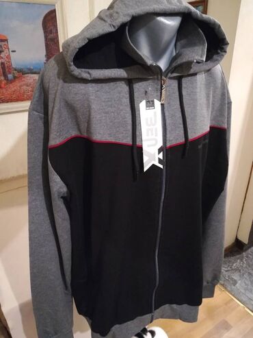Novi muski duks sa kragnom i kapuljacom u velikom broju Benx 5XL Crno-sivi. Novopazarski. Odlican muski duks za muskarce svih uzrasta. Uradjen od prijatnog i vrlo kvalitetnog materijala. Lagan, komotan, vrlo lepog dezena, lako se kombinuje sa bilo kojim komadom garderobe. Izuzetan muski duks koji ima dva dzepa sa prednje strane, kapuljacu, kragnu i kopca se na rajferslus. Super ide na farmerke, pantalone i trenerke. Mogu ga nositi i punije osobe sa preko 120 kg. Pamucna dukserica sa kragnom i kapuljacom Benx je nova sa etiketom.
