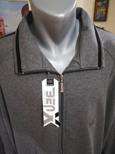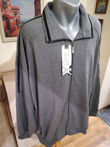 DrugoNovi muski pamucni duks sa kragnom u velikom broju Benx 5XL Siva. Turska.