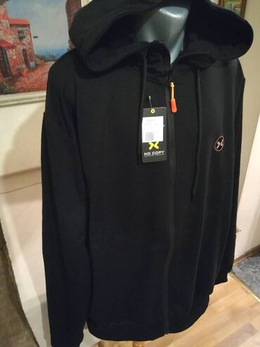 Novi muski pamucni duks sa kapuljacom u velikom broju No Copy 6XL. Novopazarski. Izuzetno veliki muski duks uradjen od prijatnog i veoma kvalitetnog pamuka. Odlican muski duks koji ima dva dzepa sa zipperom na prednjoj strani, kapuljacu, kragnu i kopca se na rajferslus. Duks, takodje, ima ranflu na rukavima i dole na donjem rubu dukserice kao i uckur za zatezanje na kapuljaci. Super ide na farmerke, pantalone i trenerke. Mogu ga nositi i punije osobe sa preko 130 kg. Pamucna muska dukserica sa kapuljacom u velikom broju No Copy je nova sa etiketom.