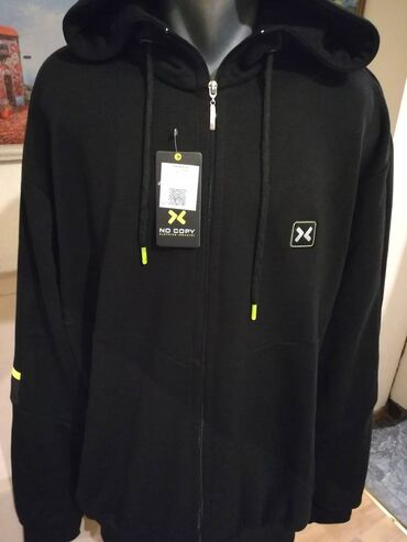 Novi muski pamucni duks sa kragnom i kapuljacom u velikom broju No Copy 6XL. Novopazarski. Izuzetno veliki muski duks uradjen od prijatnog i veoma kvalitetnog pamuka. Odlican muski duks koji ima dva dzepa sa zipperom na prednjoj strani, kapuljacu, kragnu i kopca se na rajferslus. Duks, takodje, ima ranflu na rukavima i dole na donjem rubu dukserice kao i uckur za zatezanje na kapuljaci. Super ide na farmerke, pantalone i trenerke. Mogu ga nositi i punije osobe sa preko 120 kg. Pamucna muska dukserica sa kapuljacom u velikom broju 6XL No Copy je nova sa etiketom.