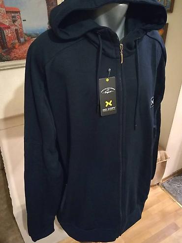 Novi muski pamucni duks sa kragnom i kapuljacom u velikom broju No Copy 6XL. Novopazarski. Izuzetno veliki muski duks uradjen od prijatnog i veoma kvalitetnog pamuka. Odlican muski duks koji ima dva dzepa sa zipperom na prednjoj strani, kapuljacu, kragnu i kopca se na rajferslus. Duks, takodje, ima ranflu na rukavima i dole na donjem rubu dukserice kao i uckur za zatezanje na kapuljaci. Super ide na farmerke, pantalone i trenerke. Mogu ga nositi i punije osobe sa preko 120 kg. Pamucna muska dukserica sa kapuljacom u velikom broju 6XL No Copy je nova sa etiketom.