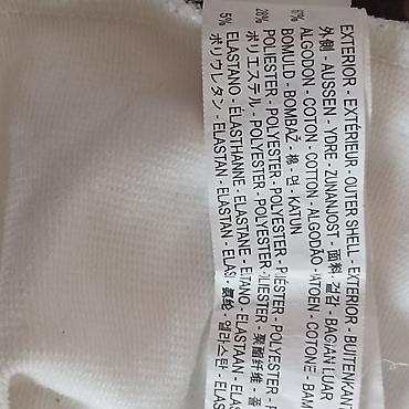 - Materijal (spoljašnji sloj): 67% pamuk, 28% poliester, 5% elastan – prijatan na koži, sa malo rastezanja