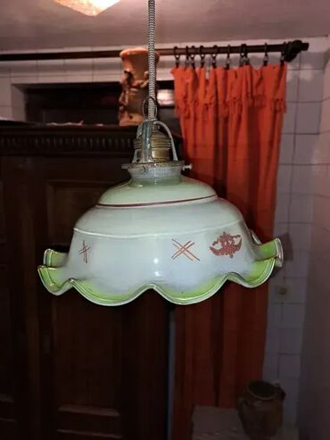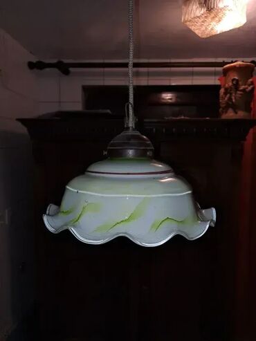 Pokupiti na licu mestaDva stara lustera, visilice sa pocetka 20. veka u odlicnom stanju, bez plafonske rozetne. Precnik stakala 23 i24cm i duzina kabla 90cm. Cena po komadu. Cena za oba.