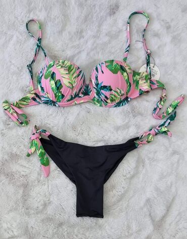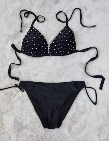 Nov kupaći kostim, zanimljiv, atraktivan. Iznutra na beloj postavi,gde se vade jastučići, zakačena je jedna mala nit noktom. Veličina je L.