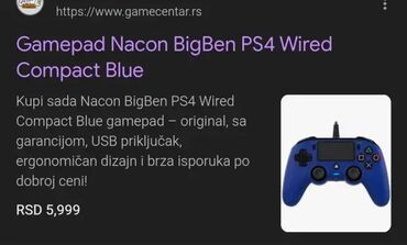 Dzojstik je nov, 10/10 Opis Nacon Wired Compact Controller je zvanično licenciran za PS4 konzole i može se pohvaliti nizom osnovnih karakteristika, uključujući touchpad, vibraciju i LED indikator statusa plejera. Takođe uključuje akcione tastere sa PlayStation simbolima i bojama, kao i tastere SHARE, OPTIONS i PS. Ergonomski oblik i gumena površina pružaju vrhunsku udobnost i optimalno prianjanje za sve vrste igara, čak i nakon dugih sesija igranja. Sa kablom od 3 m, lako se uklapa u sistem za igranje igara u dnevnoj sobi. Dolazi sa priključkom za slušalice za potpuno uranjanje u omiljene igre. Wired Compact Controller je takođe kompatibilan sa računarom (X-Input) za još veću raznovrsnost. Specifikacija: Povezivanje: USB Wireless: ne Dužina kabla: 300cm Softver: ne Priključak za slušalice: da LED player indikator Kompatibilnost: Windows/PS4 Dimenzije 17,5cm x 7cm x 21,5 cm Težina: 427g