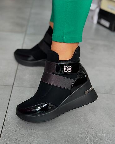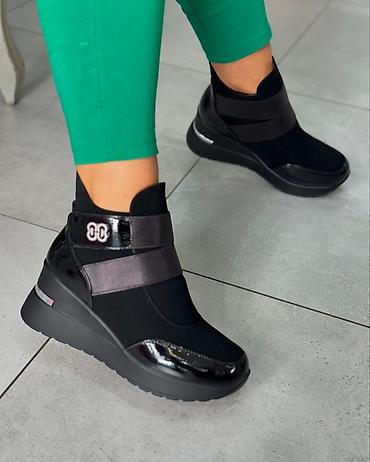 Ženske kožne gležnjače od brušene kože (antilop) u crnoj boji, sa dekorativnom srebrnom trakom sa spoljne strane i diskretnim sjajem na petnom delu. - Oblik: klasičan, zatvoreni vrh, visina iznad...