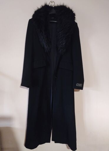 Duga crna prošivena jakna/kaput sa bogatim prirodnim bež krznenom postavom i detaljima: - široka krznena kragna koja se spušta duž cele prednje strane - krzneni manžetni na rukavima - dužina ispod...