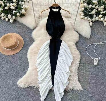 💥Zanimljiva haljina bez rukava – crno‑bela
