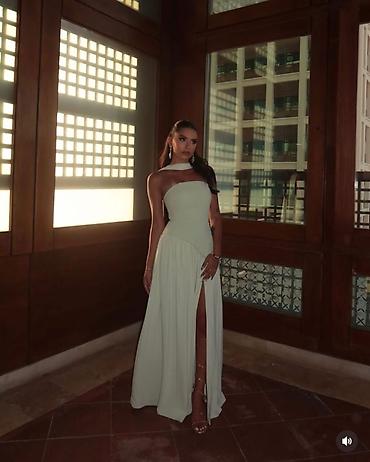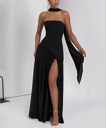 ✨Elegantna duga večernja haljina sa visokim šlicem i efektom asimetričnog preklopa.