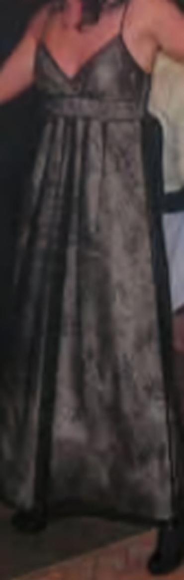 Elegantna duga haljina sa drapiranim dekolteom - Model: duga, uska silueta koja vizuelno izdužuje figuru - Gornji deo: bogato drapiran preklop (vodopad), V-izrez spreda; blago drapiranje i na leđi...