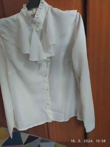 Košulja na pruge, dugih rukava, sa klasičnim kragnom i kopčanjem na dugmad celom dužinom. Svetloplava osnova sa belim vertikalnim prugama. Jedan džep na grudima sa leve strane. Manžetne na rukavima...