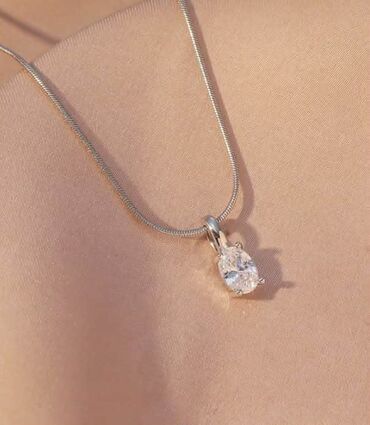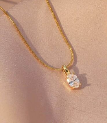 - Dizajn: tanki “snake” lančić sa klasičnim soliternim privjeskom u ovalnom (jaje) rezu