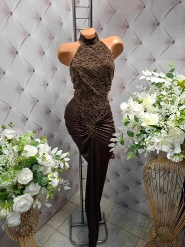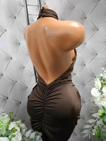 Haljina Cameleon Care, veličina XL - Elegantna midi haljina ravnog kroja, dužine do kolena - Boje: crna i taupe/siva u color-block kombinaciji sa talasastim umecima - Materijal: kombinacija elasti...