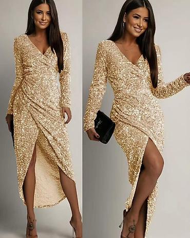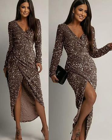 Elegantna večernja haljina sa šljokicama - Model: midi/maxi wrap kroj