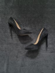 Elegantne ženske salonke – crne - Model: špicasti vrh, zatvorena peta - Boja: crna - Materijal: glatka veštačka koža (upper), unutrašnjost u crnoj boji - Štikla: oblikovana, stabilna, srednje visi...