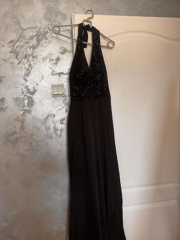 Crna mini haljina sa šljokicama - Elegantna crna koktel/večernja haljina ukrašena sitnim šljokicama koje diskretno svetlucaju pod svetlom. - Kroј: uski, pripijen, mini dužina iznad kolena. - Izrez...