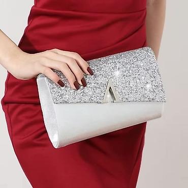 - Svečana pismo torbica sa srebrnim šljokicama i metalnim lančićem za nošenje preko ramena